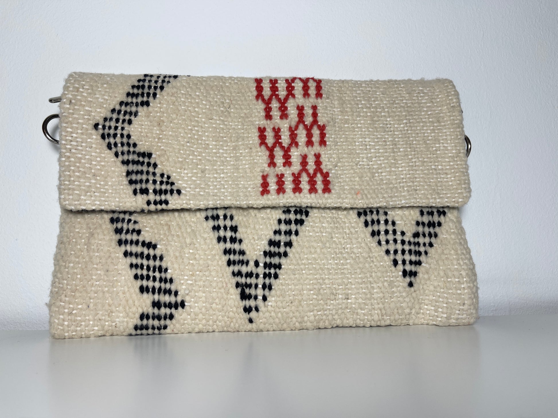 Este bolso de mano KILIM NEGRO Y ROJO está elaborado artesanalmente a partir de kilim marroquí auténtico, combinando tradición y estilo contemporáneo. Su tejido resistente y diseño único aportan un toque sofisticado y exclusivo a cualquier conjunto, ideal para quienes valoran la calidad y la artesanía en accesorios. Perfecto para uso diario o eventos especiales, ofrece durabilidad y elegancia en un solo complemento.
