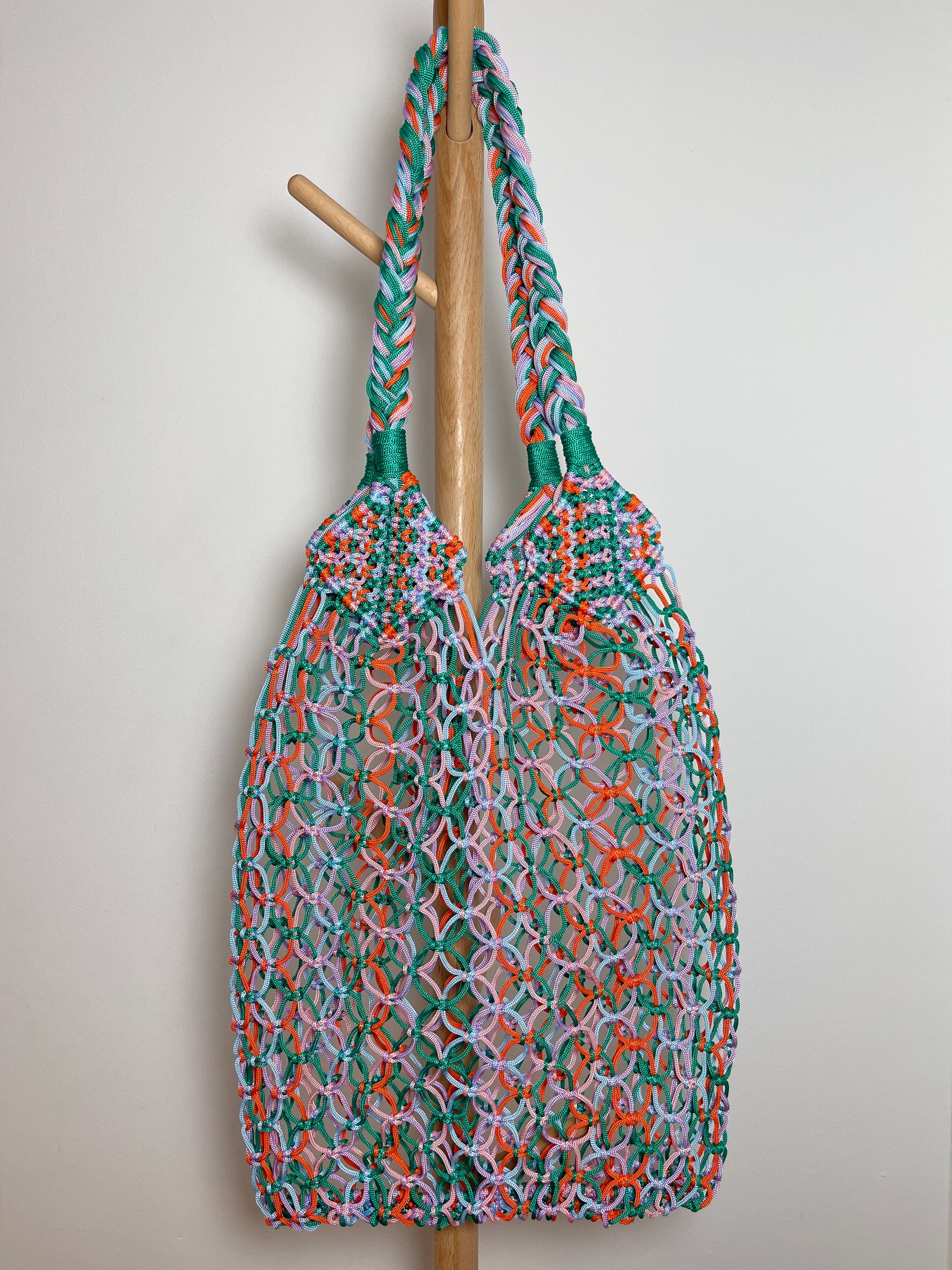 Esta bolsa artesanal está tejida a mano con técnica de macramé utilizando hilos resistentes y vibrantes. Ligera pero duradera, es ideal para tus paseos diarios, días de playa o para darle un toque especial a cualquier look.