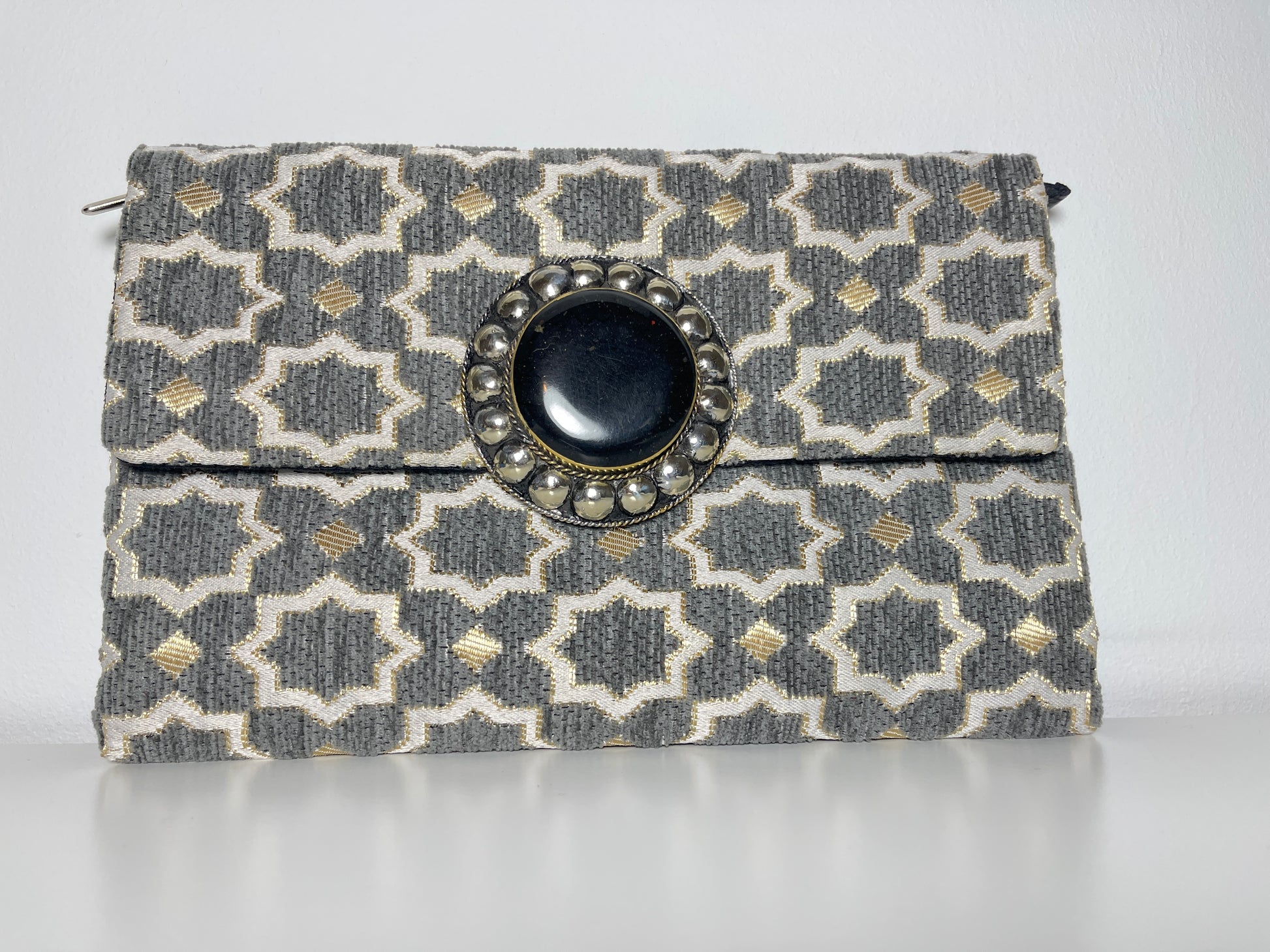 Nuestros clutchs están confeccionados con tejidos inspirados en los motivos geométricos de la arquitectura marroquí, y terminados con broches decorativos únicos. Son el accesorio perfecto para realzar tus looks, tanto de día como de noche.