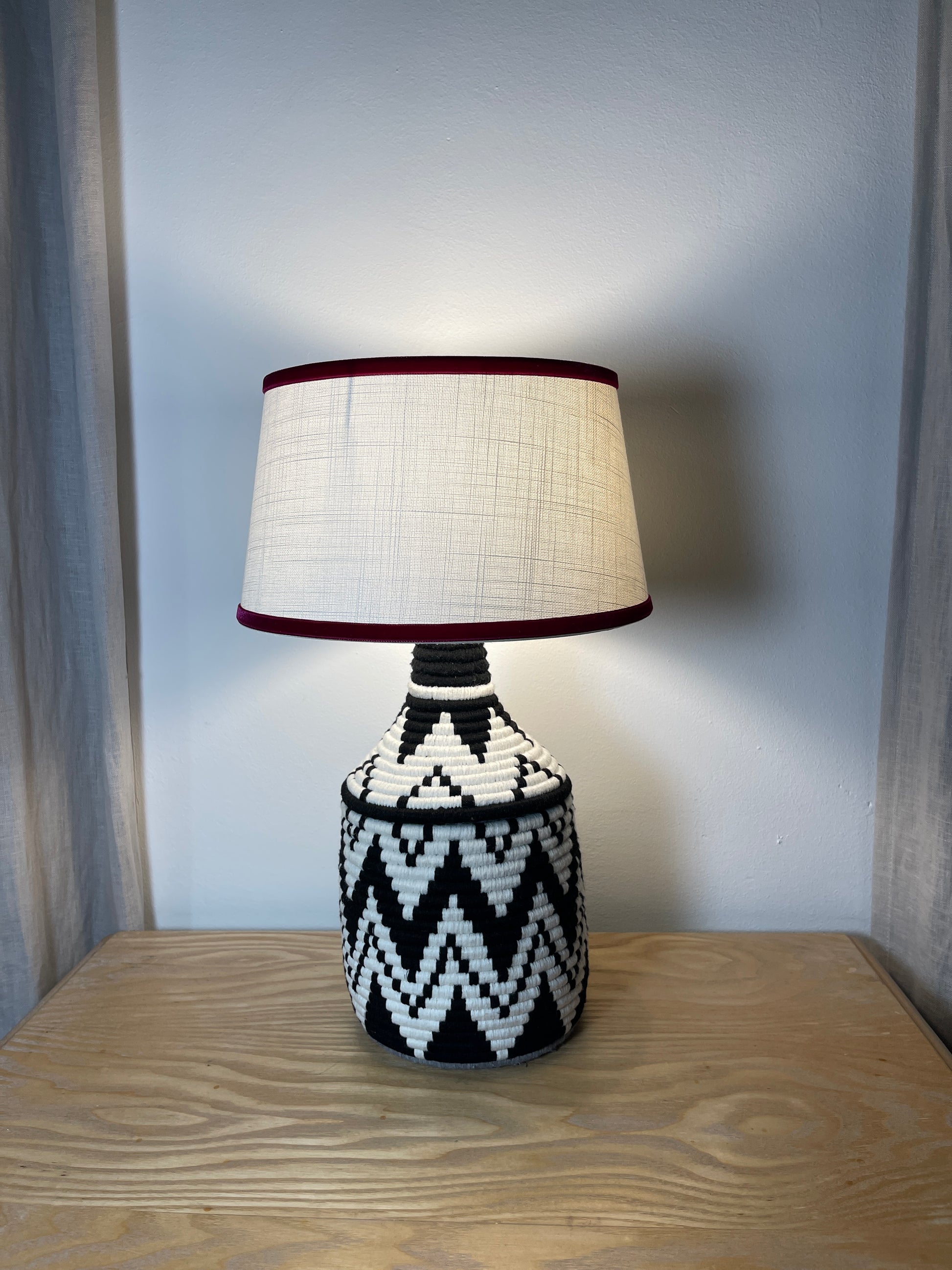 Base de lámpara elaborada a mano con fibra natural y algodón.