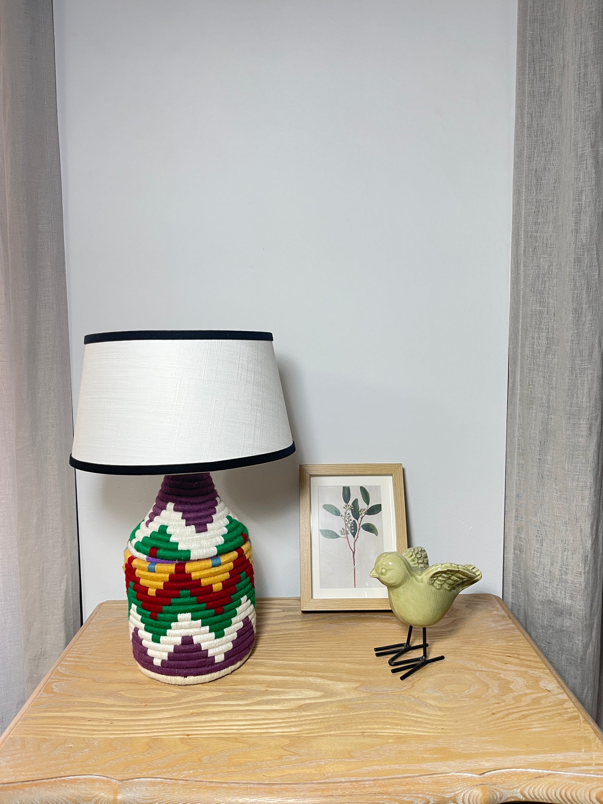 Base de lámpara elaborada a mano con fibra natural y algodón.