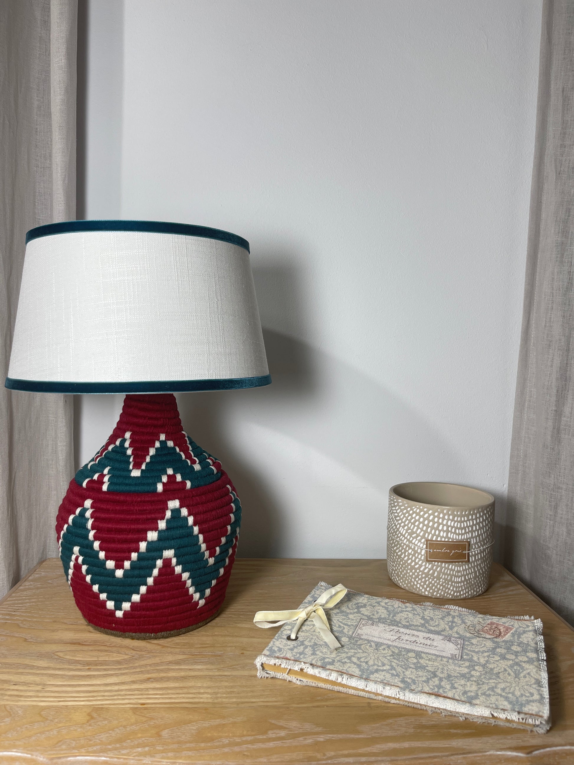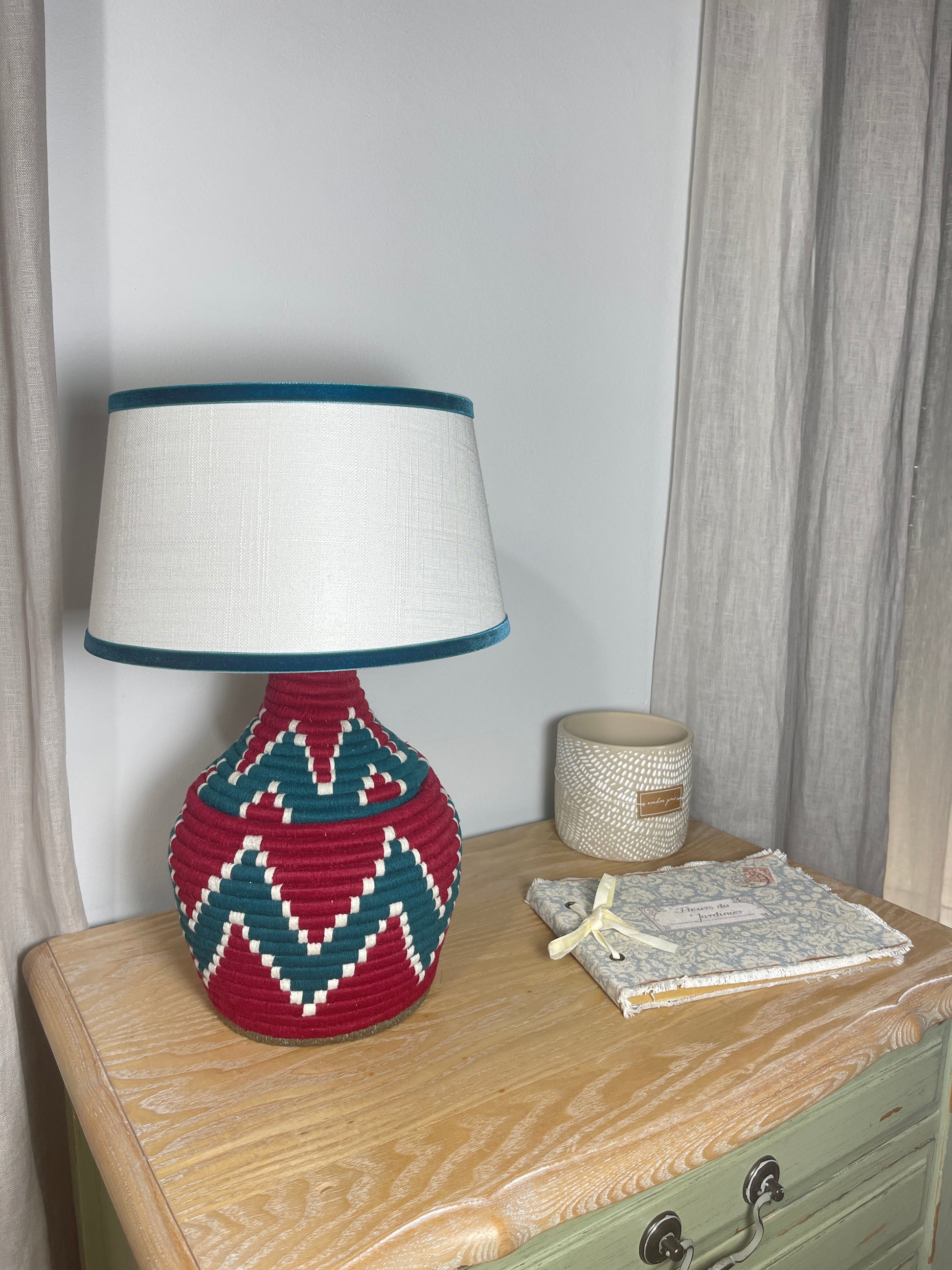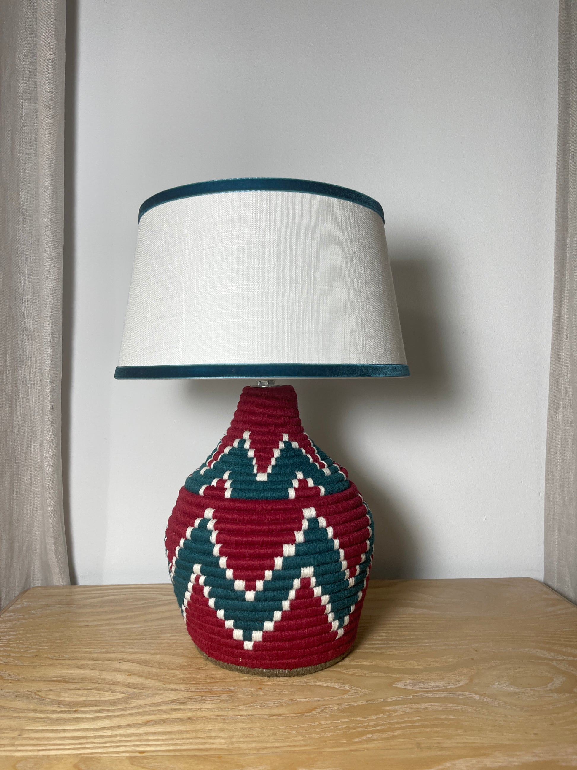 Base de lámpara elaborada a mano con fibra natural y algodón.