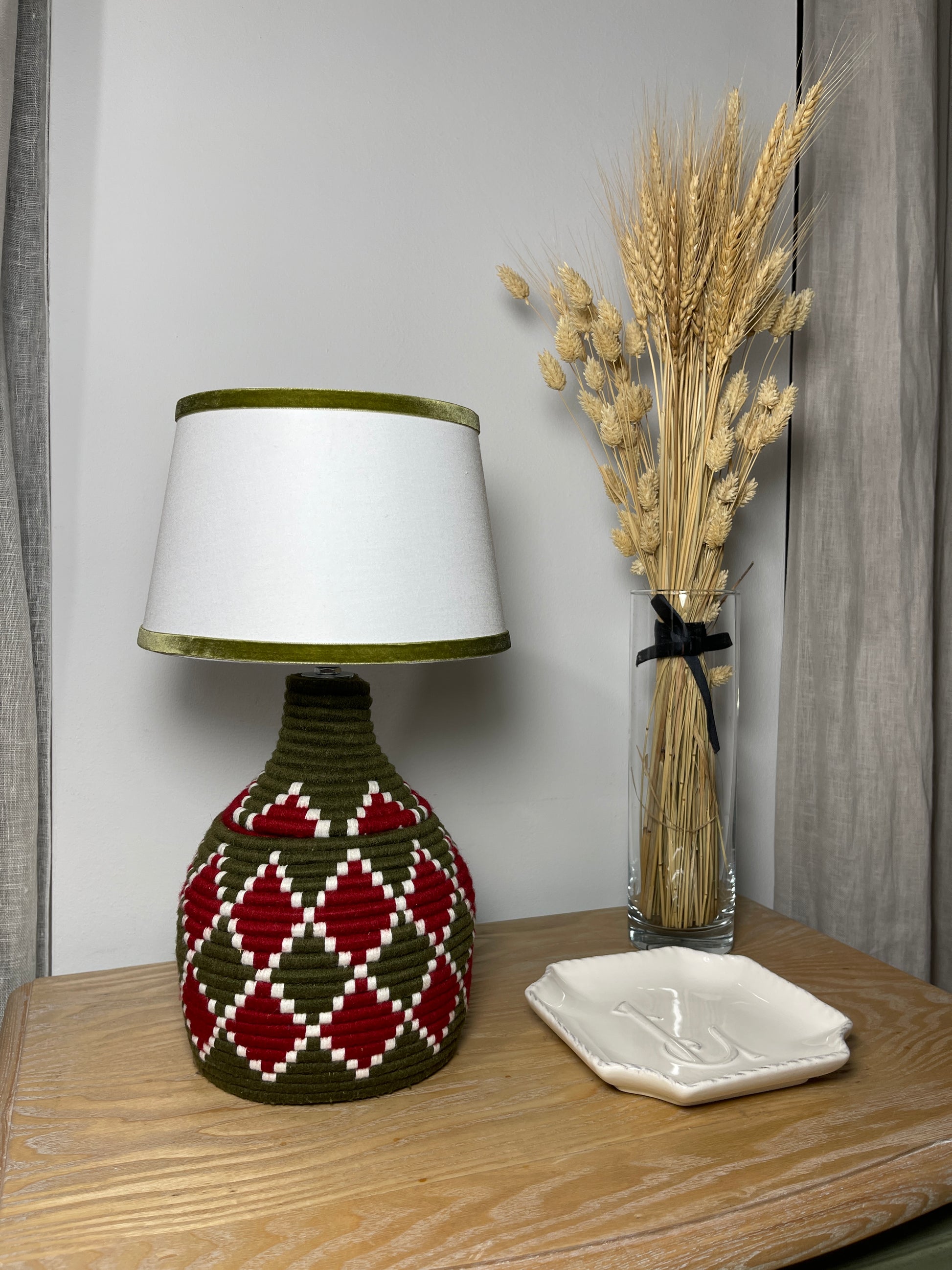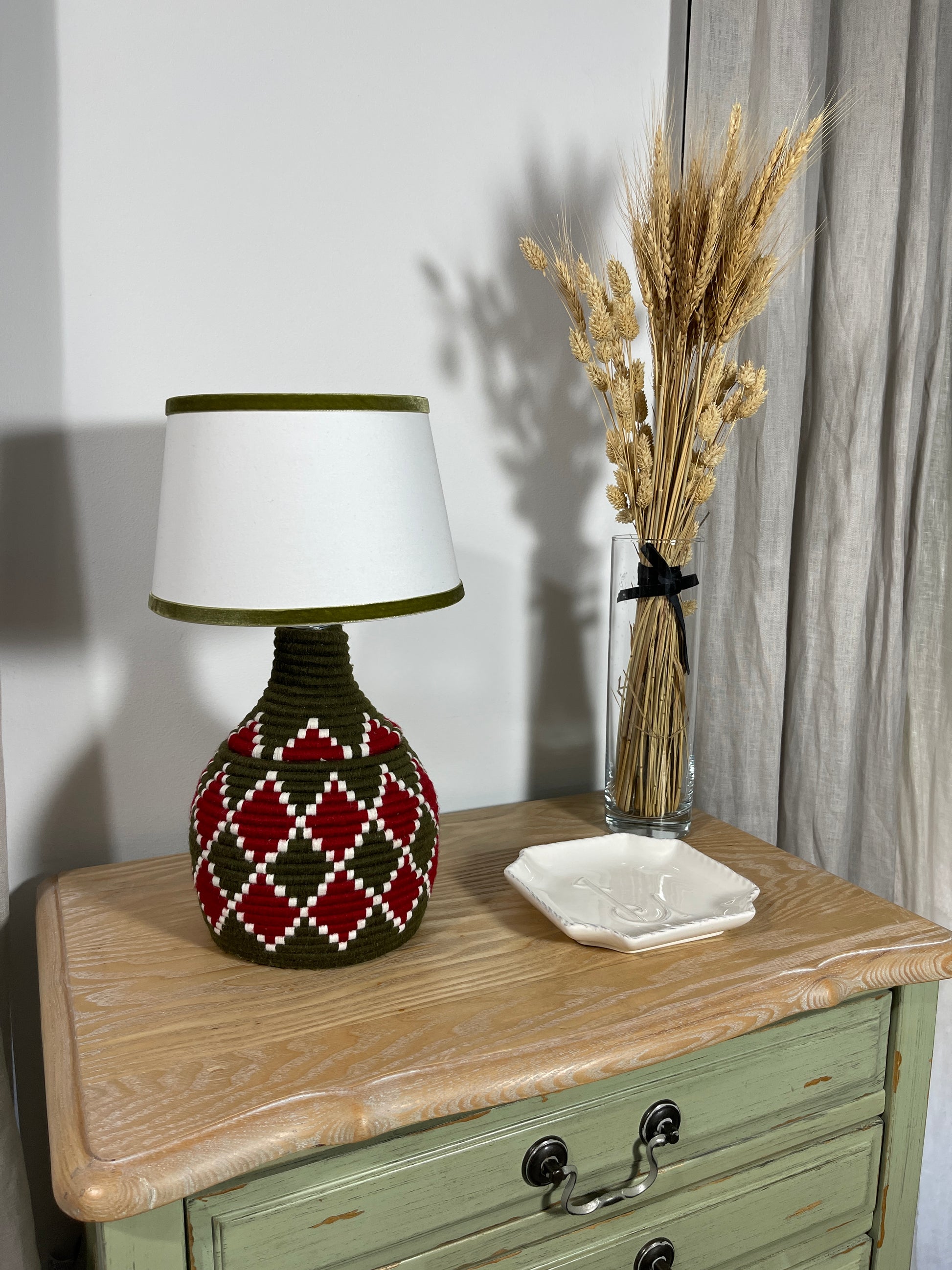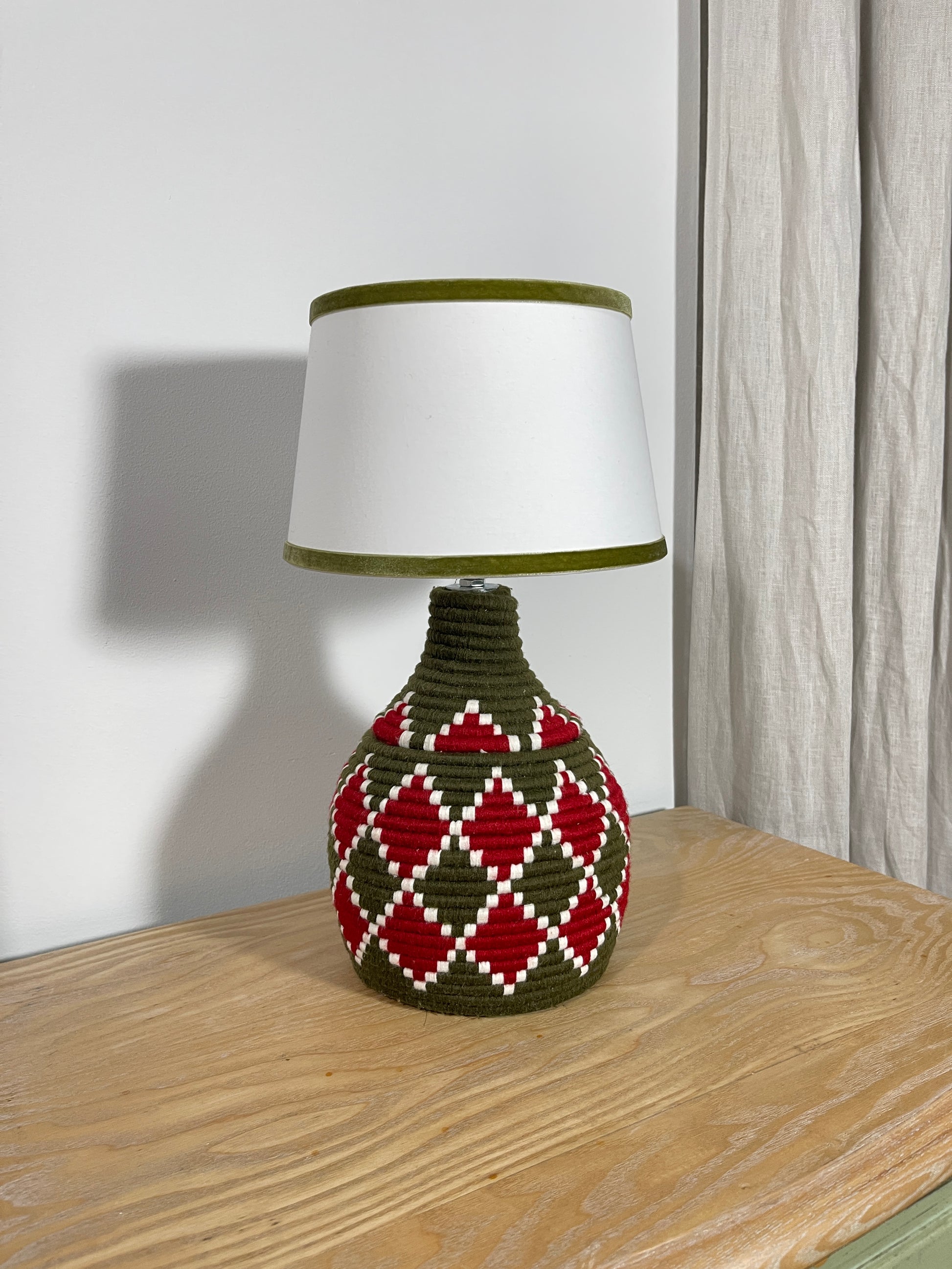 Base de lámpara elaborada a mano con fibra natural y algodón.