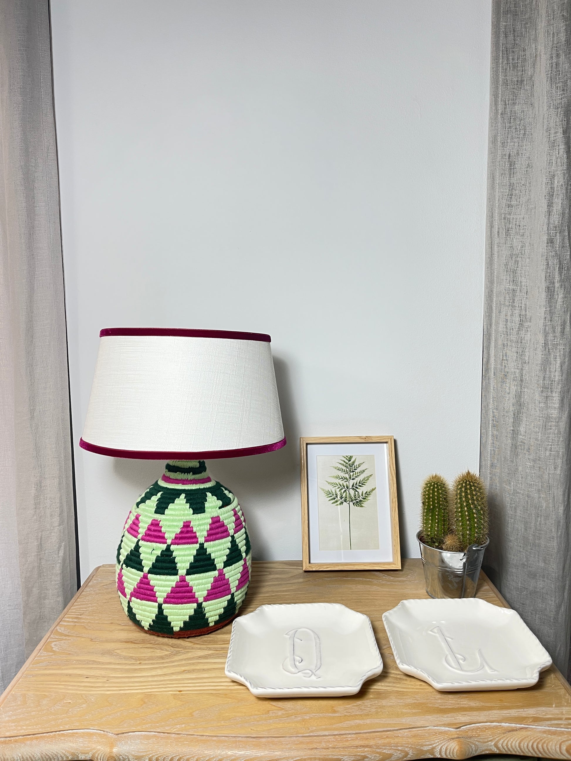 Base de lámpara elaborada a mano con fibra natural y algodón.