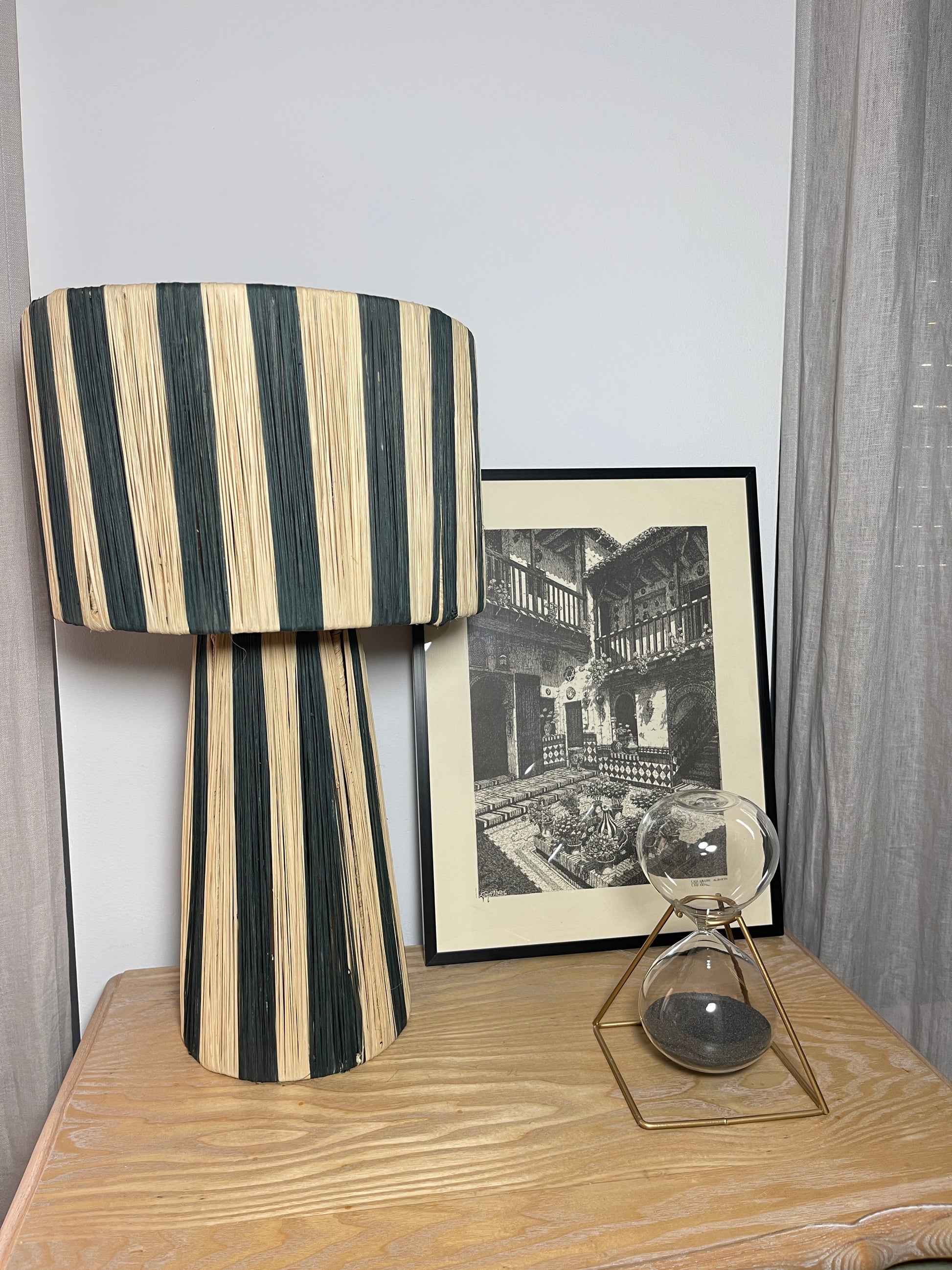 Esta lámpara de mesa artesanal es ideal para complementar la decoración de tu hogar. Elaborada con rafia, aporta un estilo natural y alegre a cualquier ambiente. Cuenta con un interruptor muy práctico para encenderla y apagarla, lo que la convierte en una opción decorativa, útil y de fácil mantenimiento.