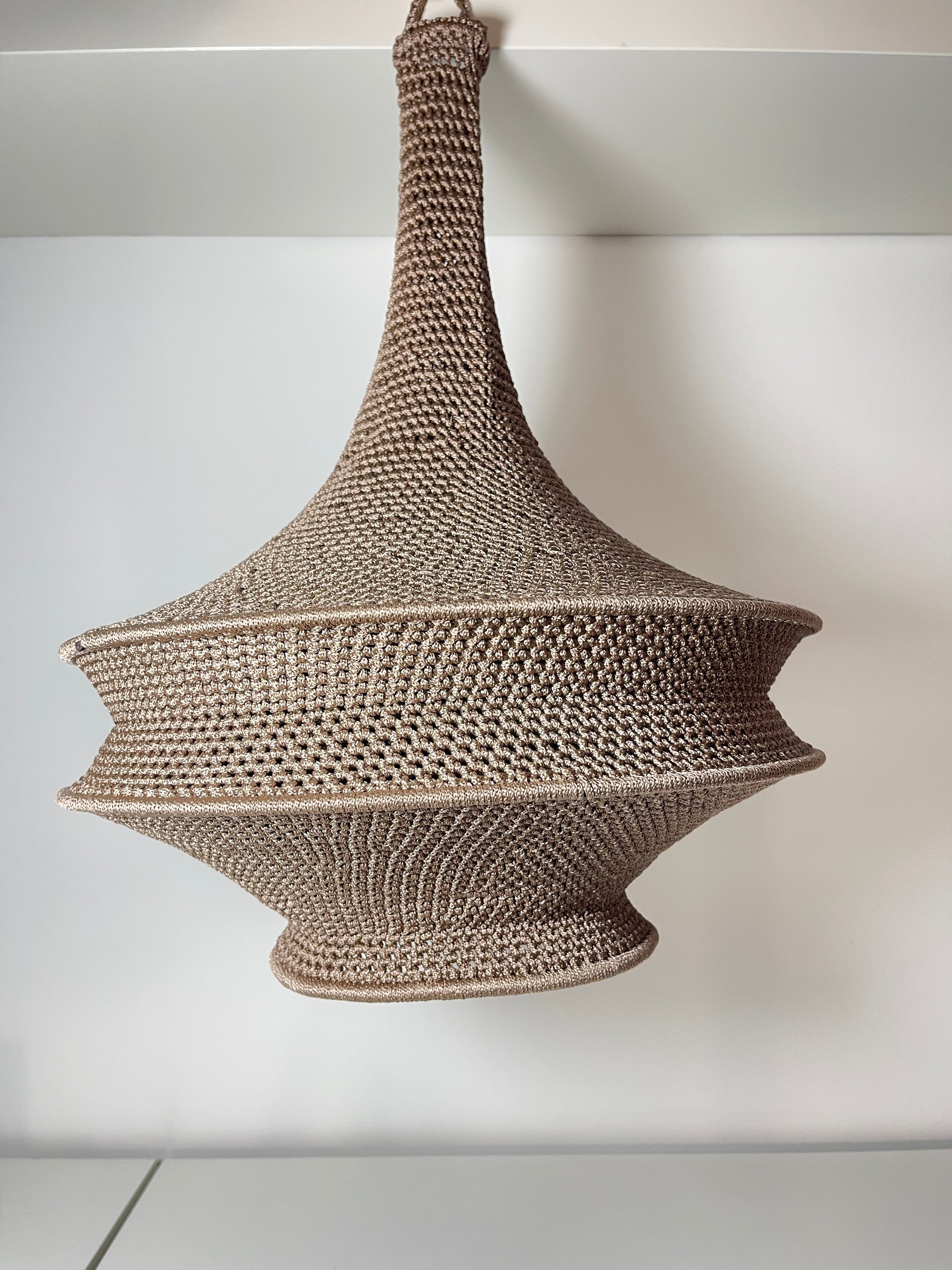 Hecha a mano con delicados nudos, su diseño aporta calidez y un estilo artesanal.
