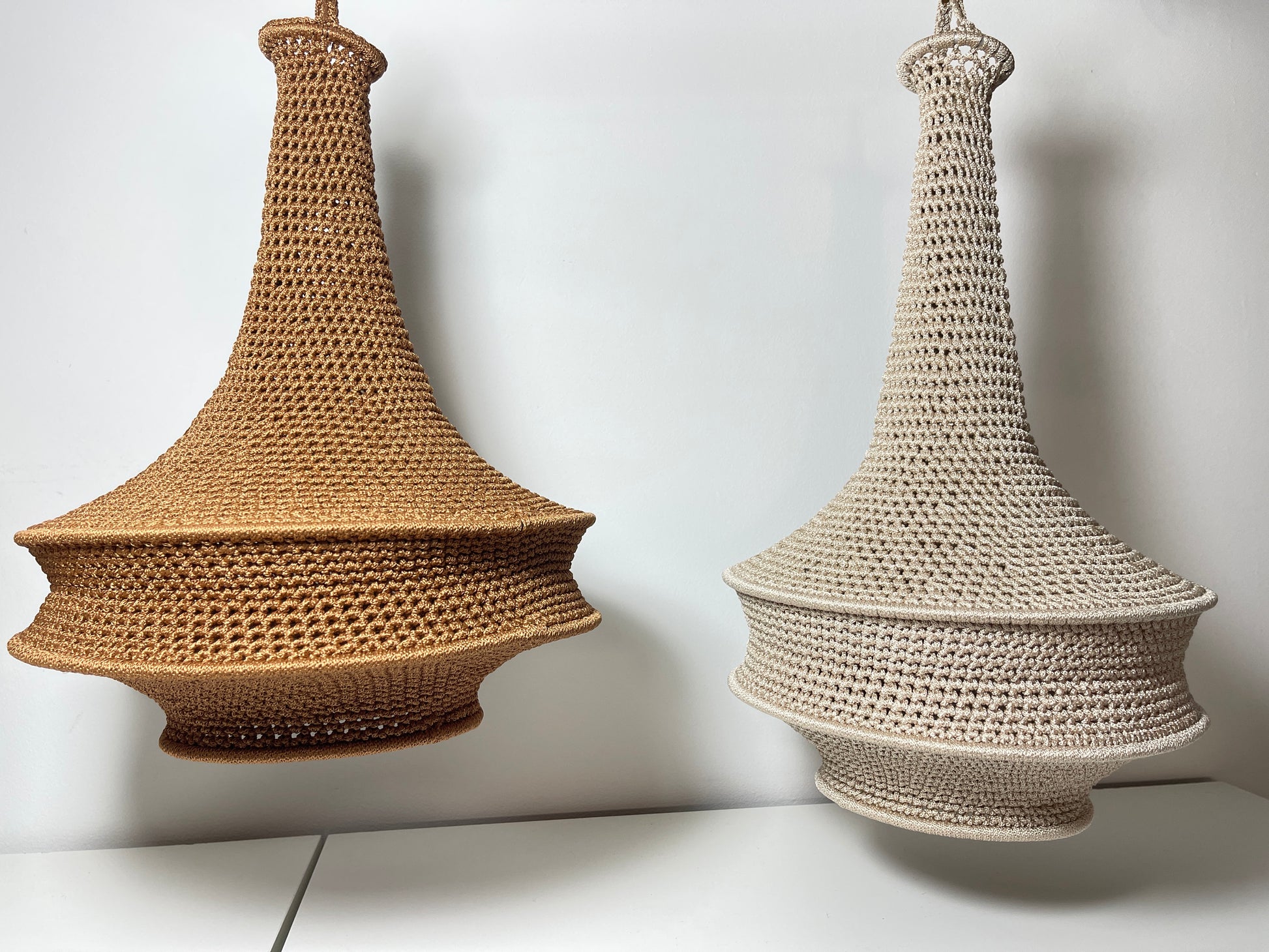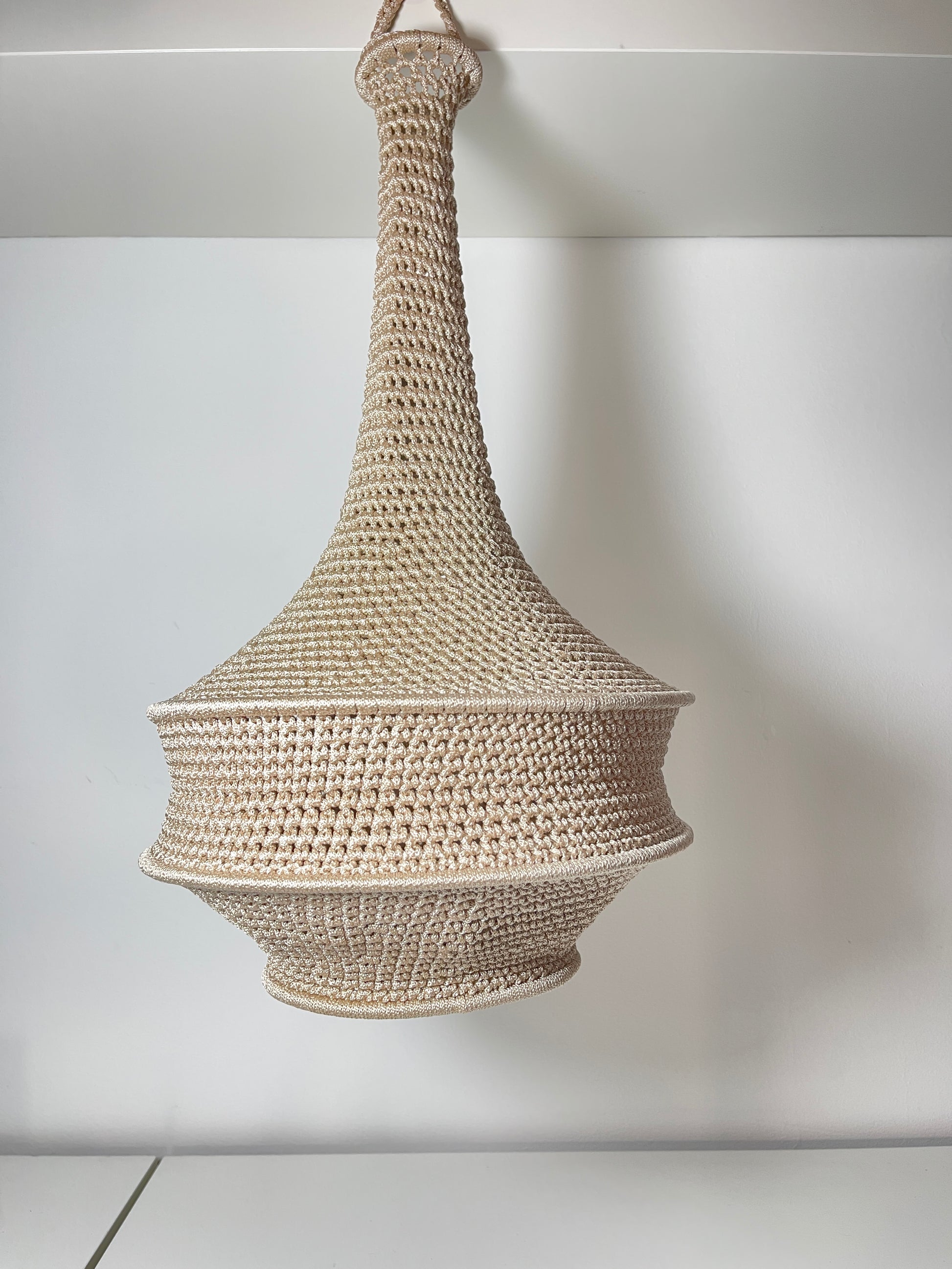 Hecha a mano con delicados nudos, su diseño aporta calidez y un estilo artesanal.