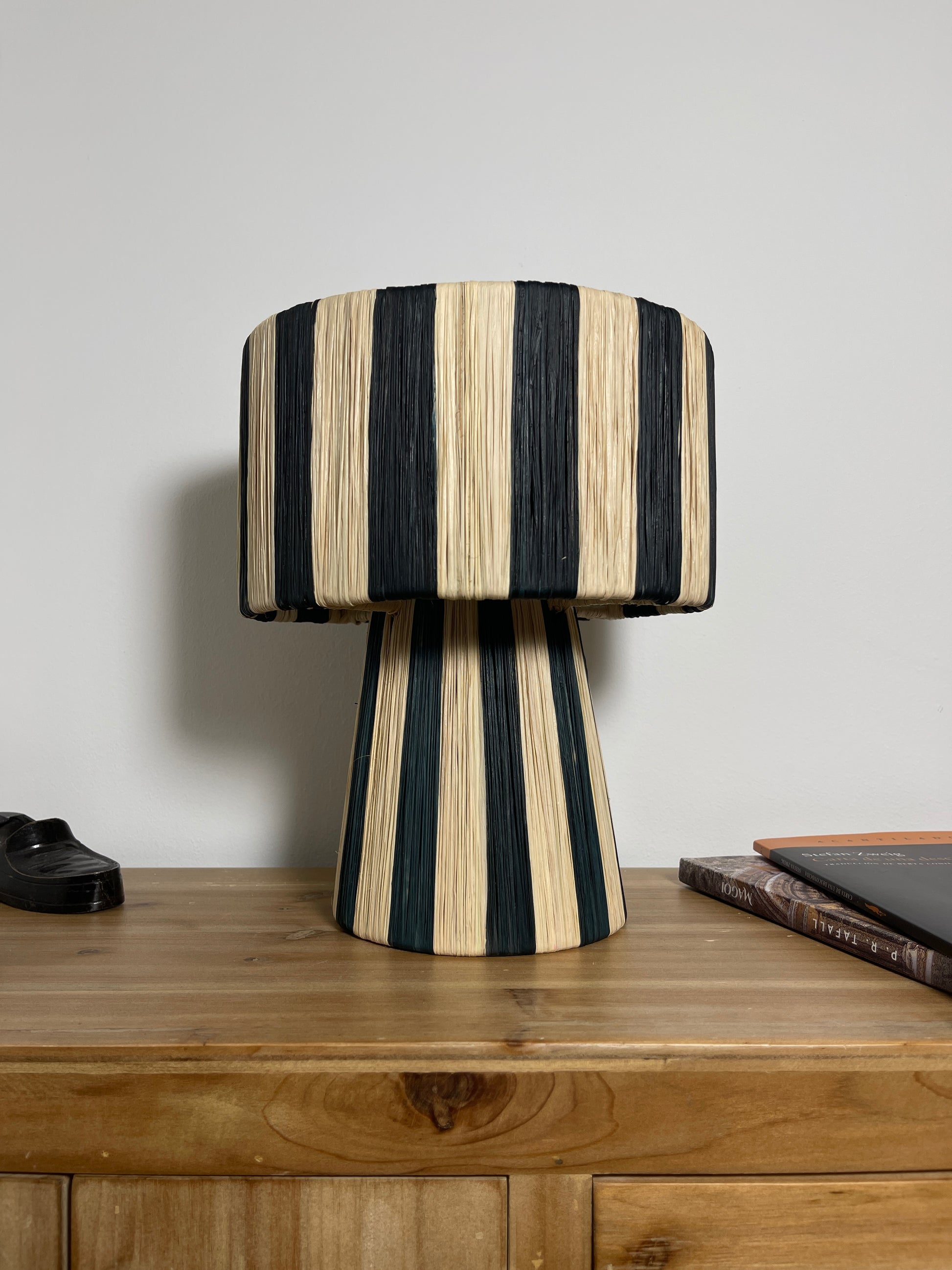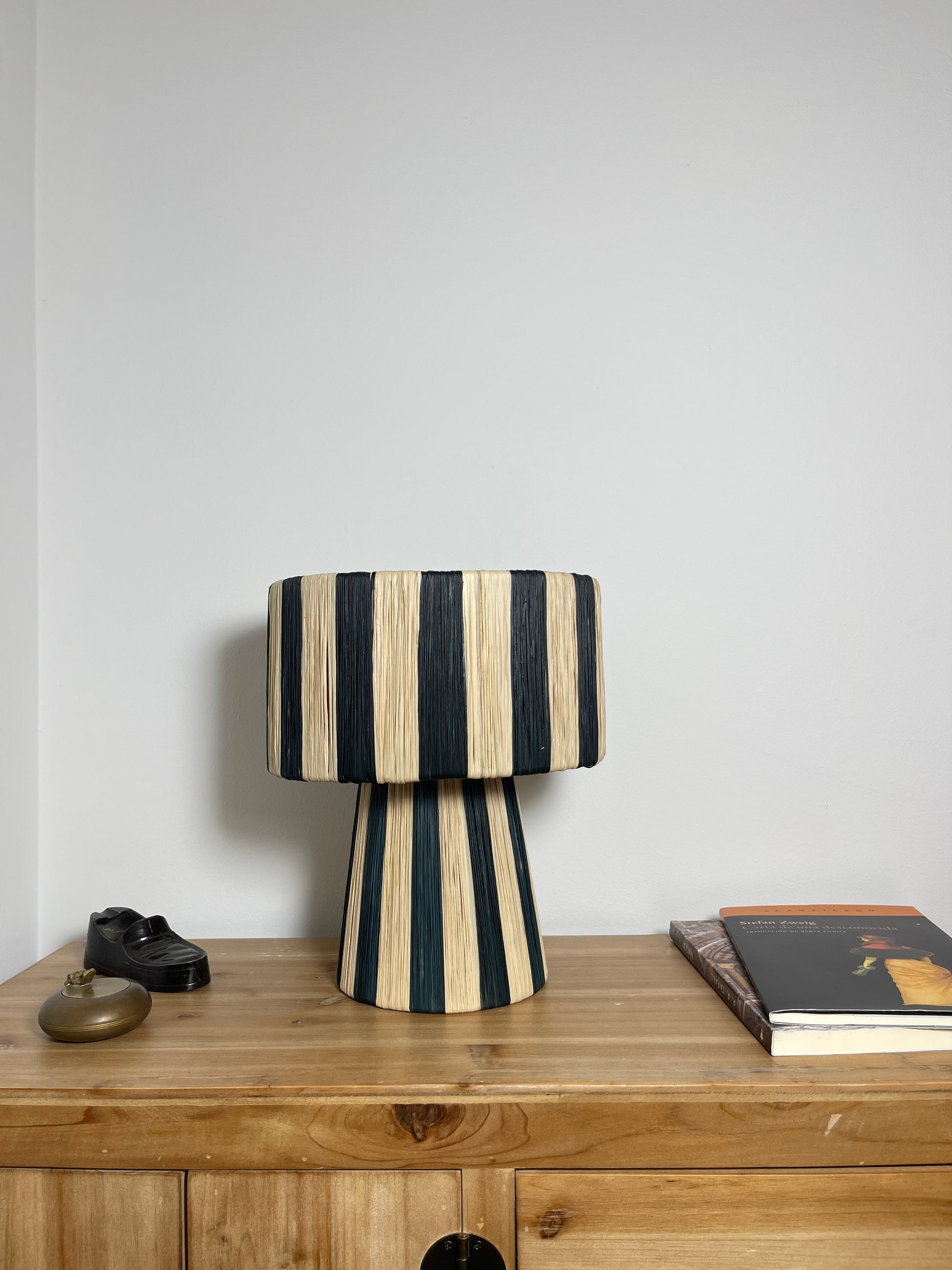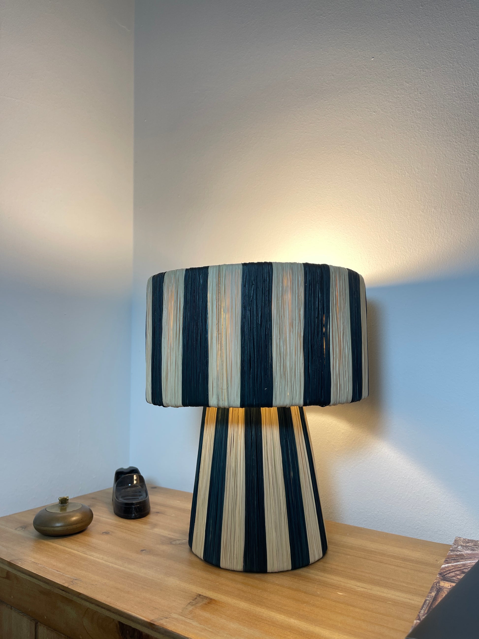 Esta lámpara de mesa artesanal es ideal para complementar la decoración de tu hogar. Elaborada con rafia, aporta un estilo natural y alegre a cualquier ambiente. Cuenta con un interruptor muy práctico para encenderla y apagarla, lo que la convierte en una opción decorativa, útil y de fácil mantenimiento.