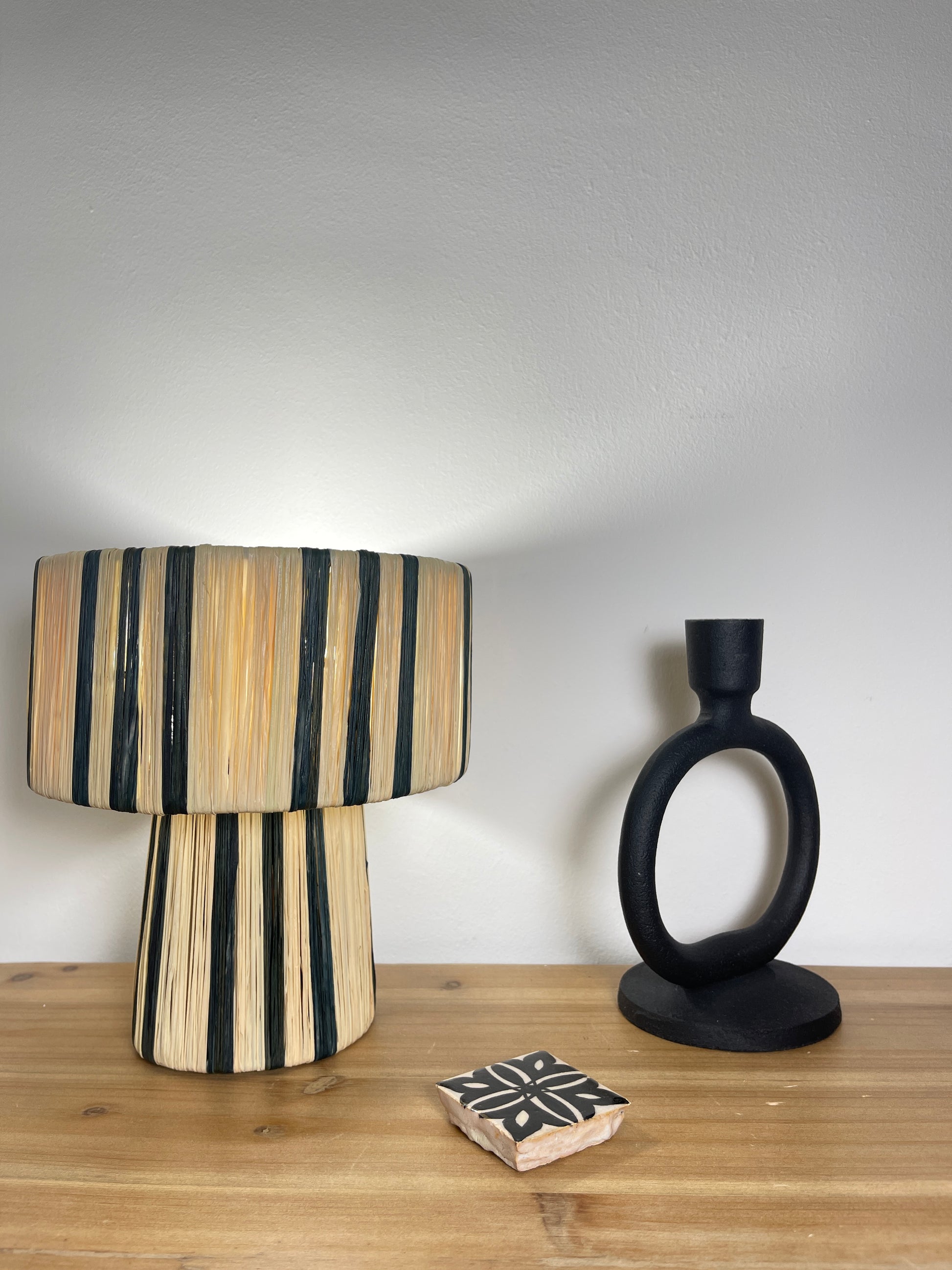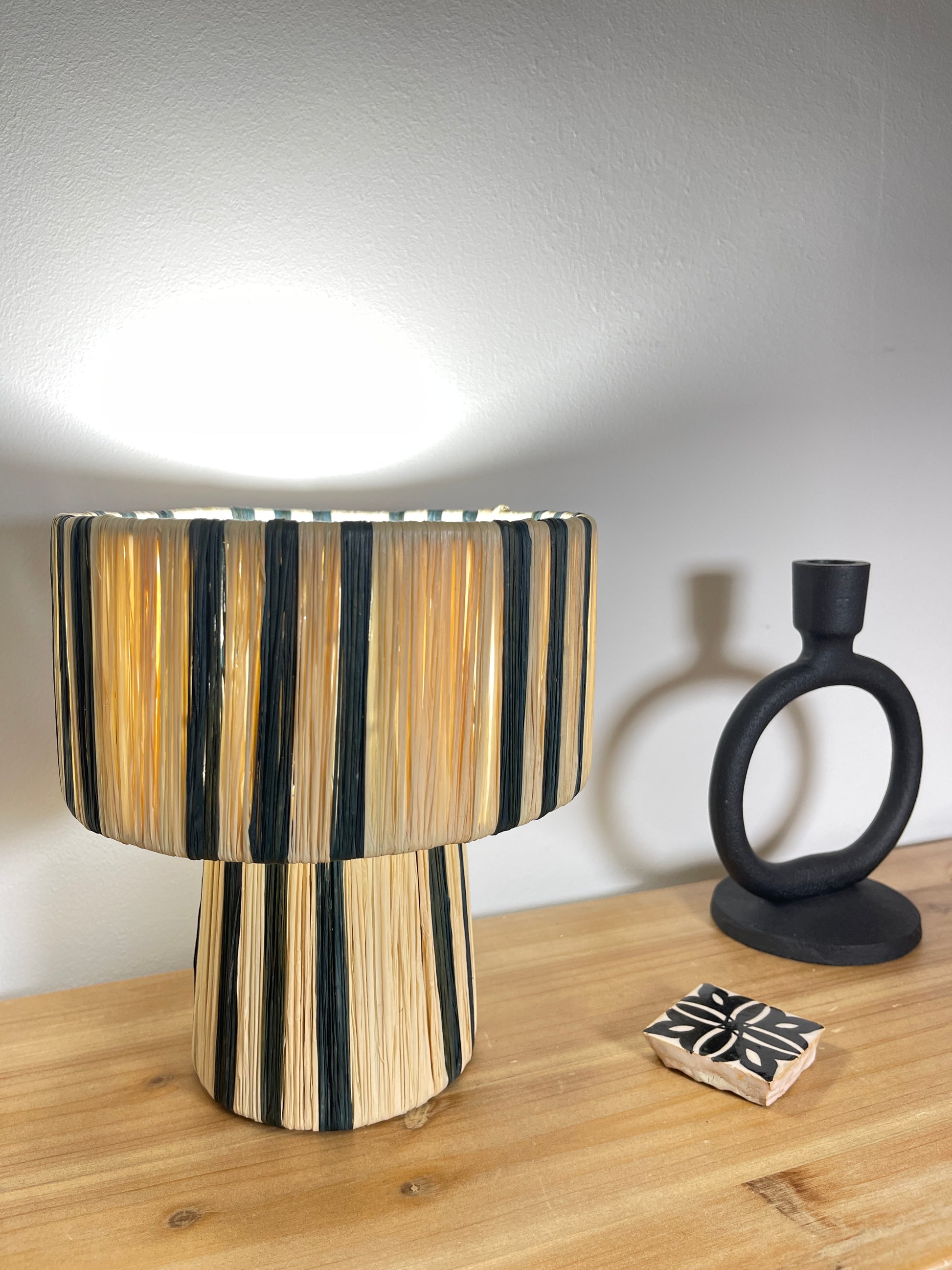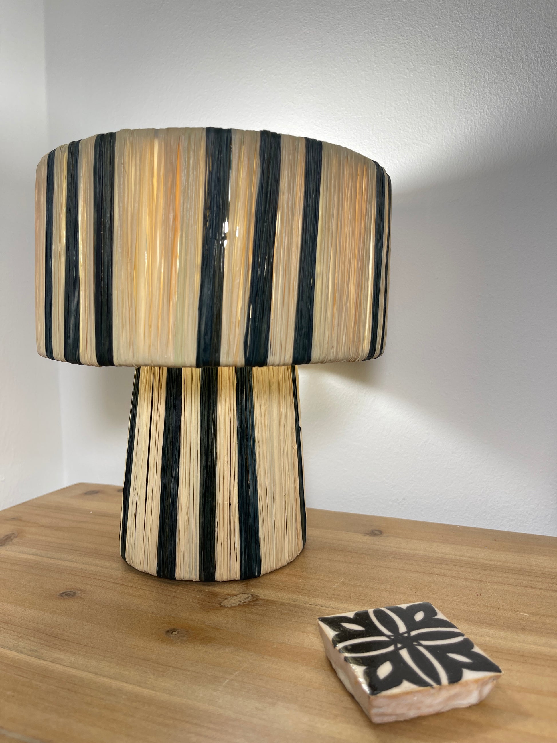 Esta lámpara de mesa artesanal es ideal para complementar la decoración de tu hogar. Elaborada con rafia, aporta un estilo natural y alegre a cualquier ambiente. Cuenta con un interruptor muy práctico para encenderla y apagarla, lo que la convierte en una opción decorativa, útil y de fácil mantenimiento.